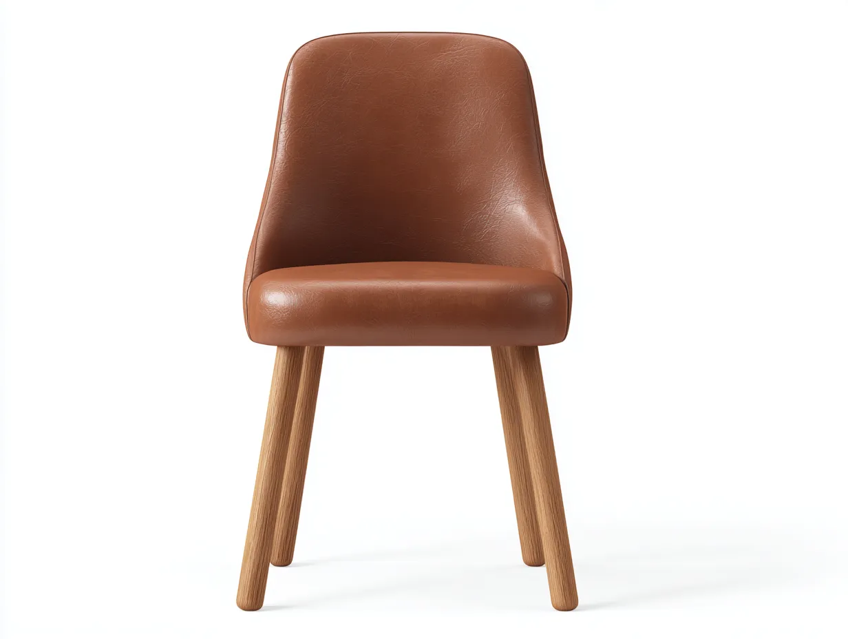 Die Sitzfläche und Rückenlehne sind mit braunem Kunstleder bezogen, das durch seine fein strukturierte Oberfläche eine warme und natürliche Optik erhält. Die stabilen Holzbeine in heller Holzfarbe sorgen für eine zuverlässige Standfestigkeit und ergänzen das Gesamtbild mit einer natürlichen Note. Die integrierte Polsterung bietet zusätzlichen Komfort im täglichen Gebrauch.