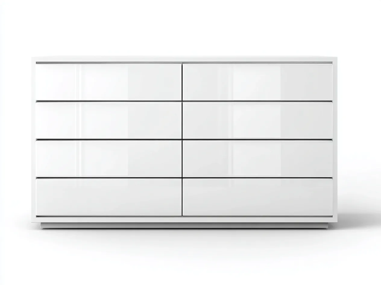 Diese Kommode mit Schubladen zeichnet sich durch ein reduziertes Design und eine klare Linienführung aus. Die breite Form bietet eine praktische Aufbewahrungslösung für Schlafzimmer, Wohnräume oder den Flur. Die helle Oberfläche sorgt für eine ruhige Raumwirkung und lässt sich problemlos mit verschiedenen Einrichtungsstilen kombinieren.
